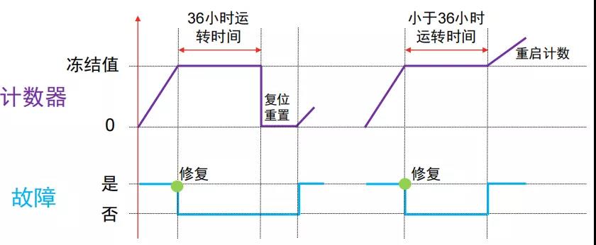 而在36小時(shí)內(nèi),故障又復(fù)現(xiàn),則計(jì)數(shù)器將會(huì)從凍結(jié)時(shí)間點(diǎn)起繼續(xù)計(jì)數(shù)。