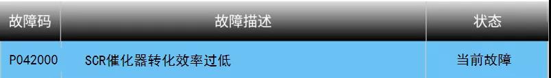 步驟一:讀取故障碼首先讀取故障碼為:SCR催化器轉(zhuǎn)化效率過(guò)低。