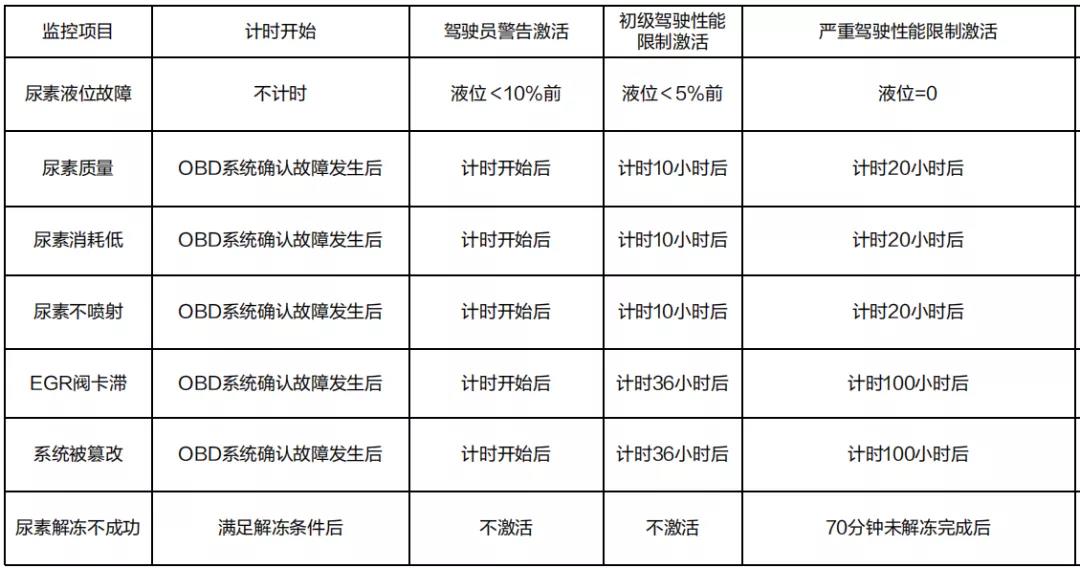 國(guó)六階段有一套新的系統(tǒng)——駕駛員報(bào)警系統(tǒng)。這個(gè)系統(tǒng)的目的是通過(guò)故障燈或儀表信息等方式,將會(huì)影響到排放和發(fā)動(dòng)機(jī)性能的故障展現(xiàn)給駕駛員,使駕駛員能夠及時(shí)到服務(wù)站或修理廠進(jìn)行維修。駕駛員報(bào)警系統(tǒng)一共分為三個(gè)階段,按照嚴(yán)重級(jí)別,分為:Level1:駕駛員報(bào)警系統(tǒng)Level2:初級(jí)駕駛性能限制系統(tǒng)激活(降扭25%)